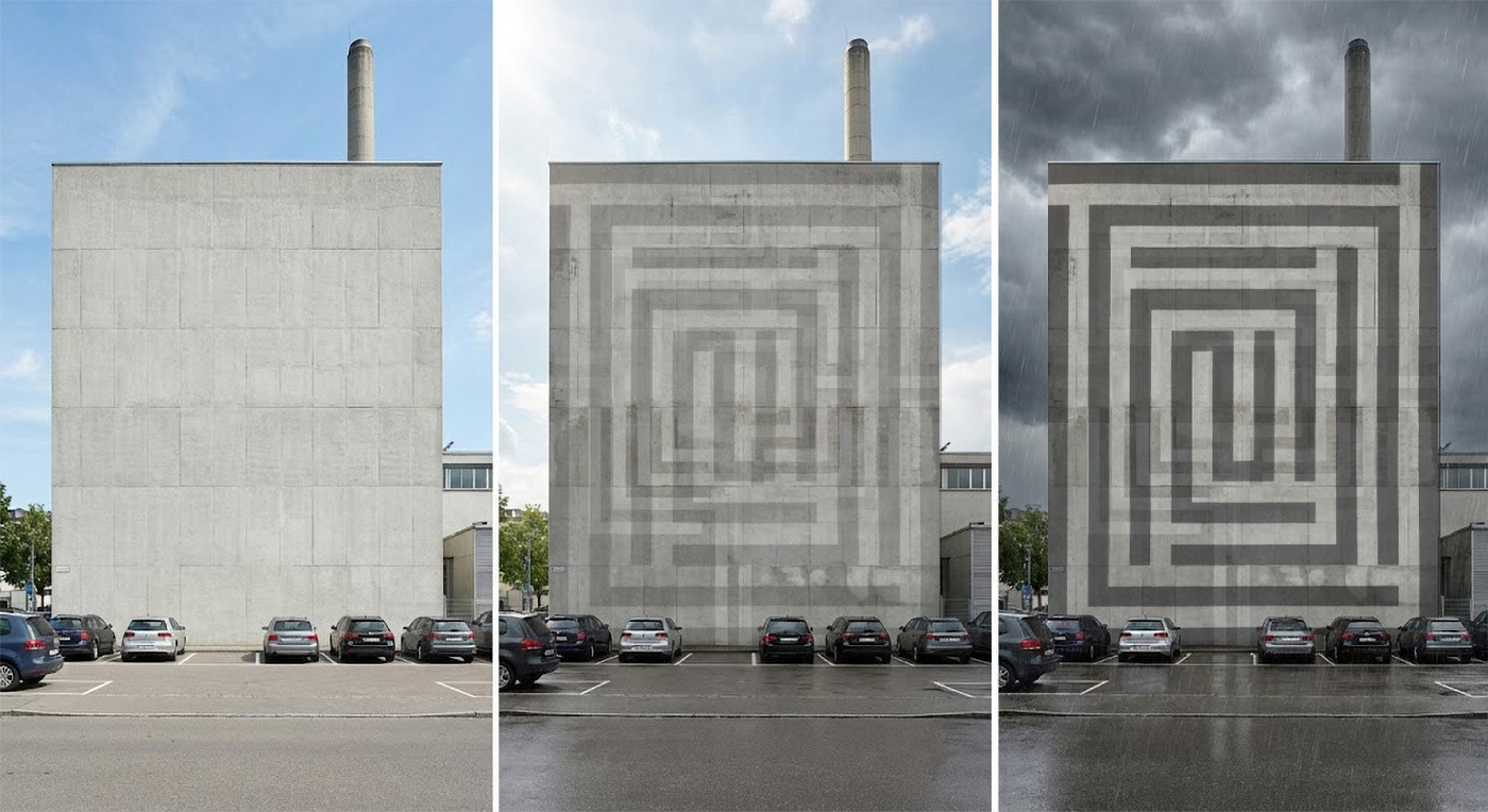 Vom statischen Beton zum kommunikativen Element: Eine Studie über die Wirkung von Muster und Kontrast auf grossen Flächen.